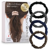 【HUA監修 シルク 100%】 4点セット ヘアゴム シュシュ 髪ゴム 大人 跡がつかない 髪留め (アソートA)