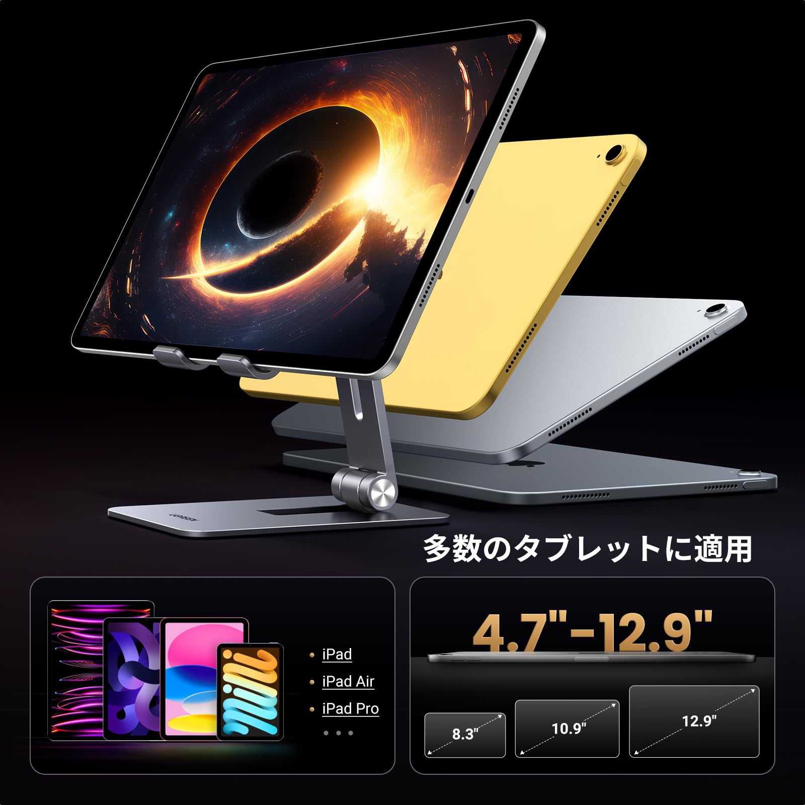 【数量限定】UGREEN タブレット スタンド iPadスタンド アルミ製 4.7-13インチ スマホとタブレット兼用 タブレットスタンド 卓上 2関節 180°調整可能 iPad mini スタンド 折りたたみ 持ち運び 軽量 滑り止め 安定性拔群 縦置き 横置き iPad Air Pro スマホ Kindle スイッチなどに対応