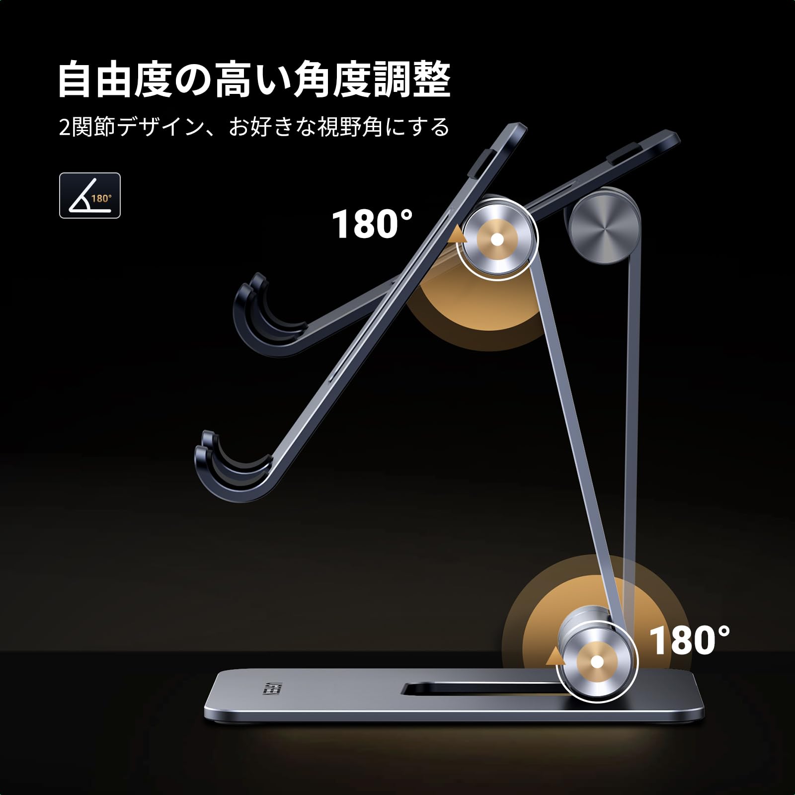 UGREEN タブレット スタンド iPadスタンド アルミ製 4.7-13インチ スマホとタブレット兼用 タブレットスタンド 卓上 2関節 180°調整可能 iPad mini スタンド 折りたたみ 持ち運び 軽量 滑り止め 安定性拔群 縦置き 横置き iPad Air Pro スマホ Kindle スイッチなどに対応