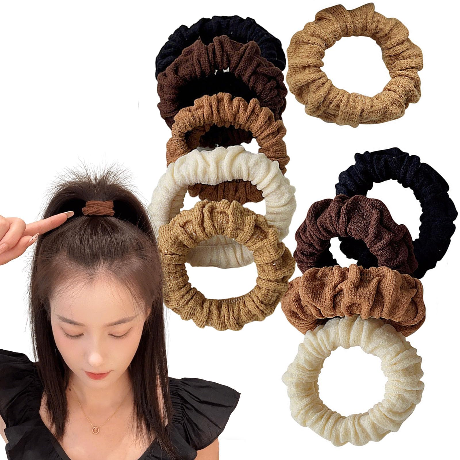 shefun ヘアゴム 黑 茶 太さ 3cm 10個セット 直径5cm 大人 髪ゴム ポニーテールレディース 高弾性 跡がつかない 髪 ゴム JP222