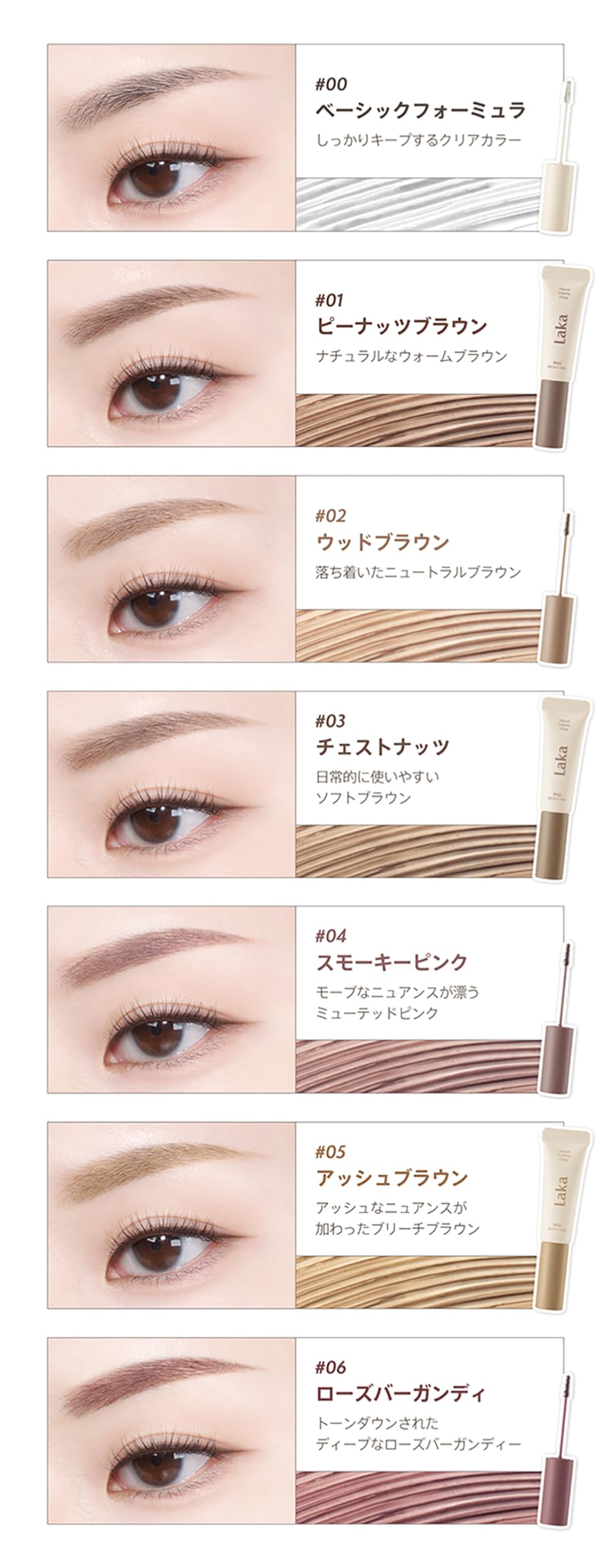 本来の眉を立体的に整えるベーシック1色、自然な発色感の中に華やぎ与えるカラータイプ6色 全7色展開