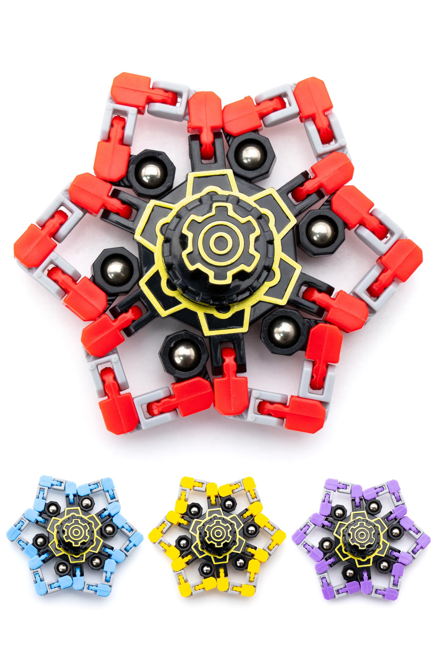 【変形可能な指ジャイロスコープ】赤、青、黄色、紫の4色セットの指ジャイロスコープです。各指ジャイロスコープには6つの変形可能なリンクがあり、さまざまな形を作り出すことができます。指先で回転させることで、スピナーとしての楽しさを味わえるだけでなく、リンクを回転させたり固定することで、ロボットや携帯電話ホルダーなど、クリエイティブな形状を作り出すことができます。回転時間はおおよそ1~2分で、人間工学に基づいた設計により、楽しく快適に使用できます。さらに、このジャイロスコープは子供たちだけでなく、大人のリラックスツールとしても最適です。