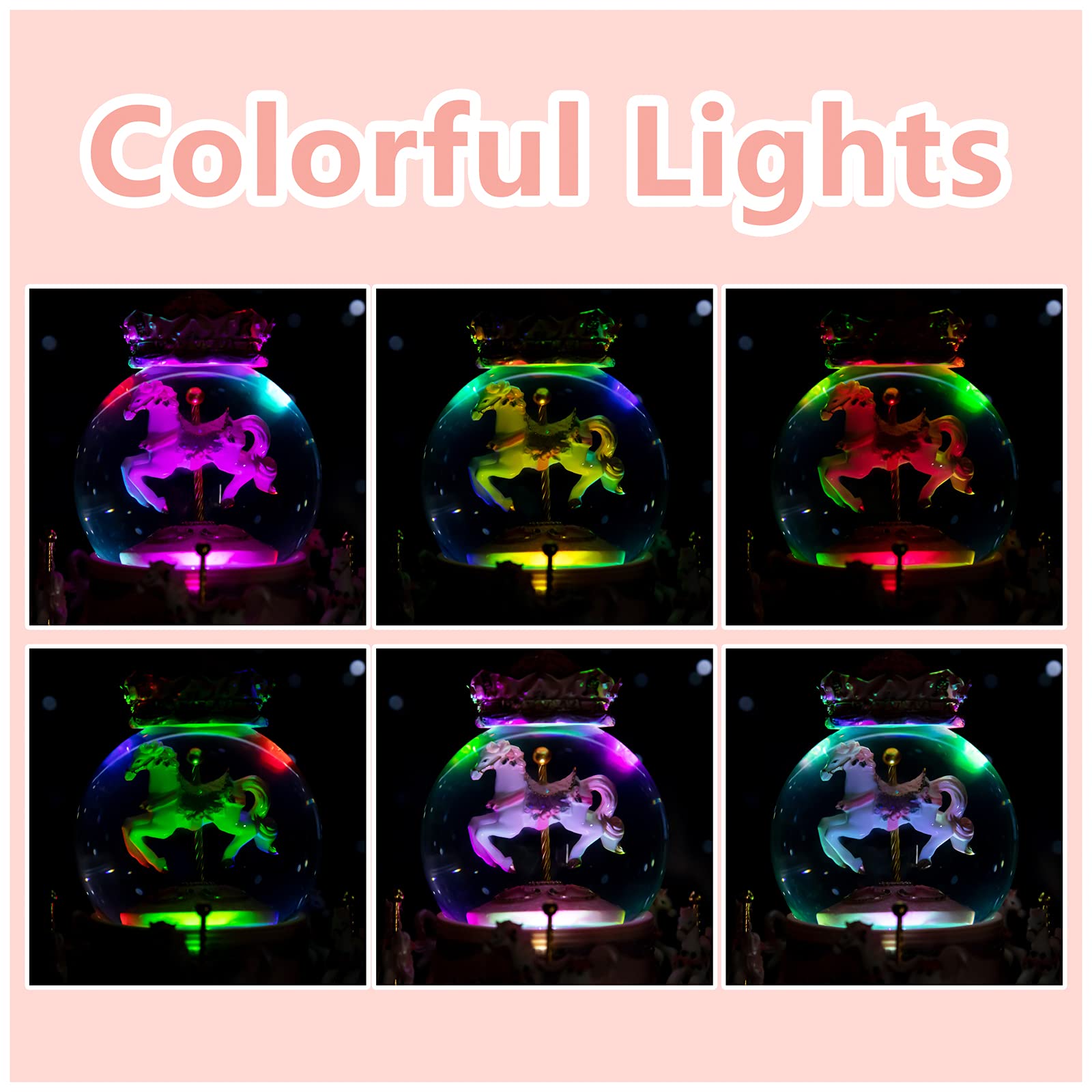 スノードーム オルゴール カラーLEDライト メリーゴーランド クリスタルボール自動降雪 女の子 女性 ガールフレンドへの誕生日 クリスマスプレゼントに人気