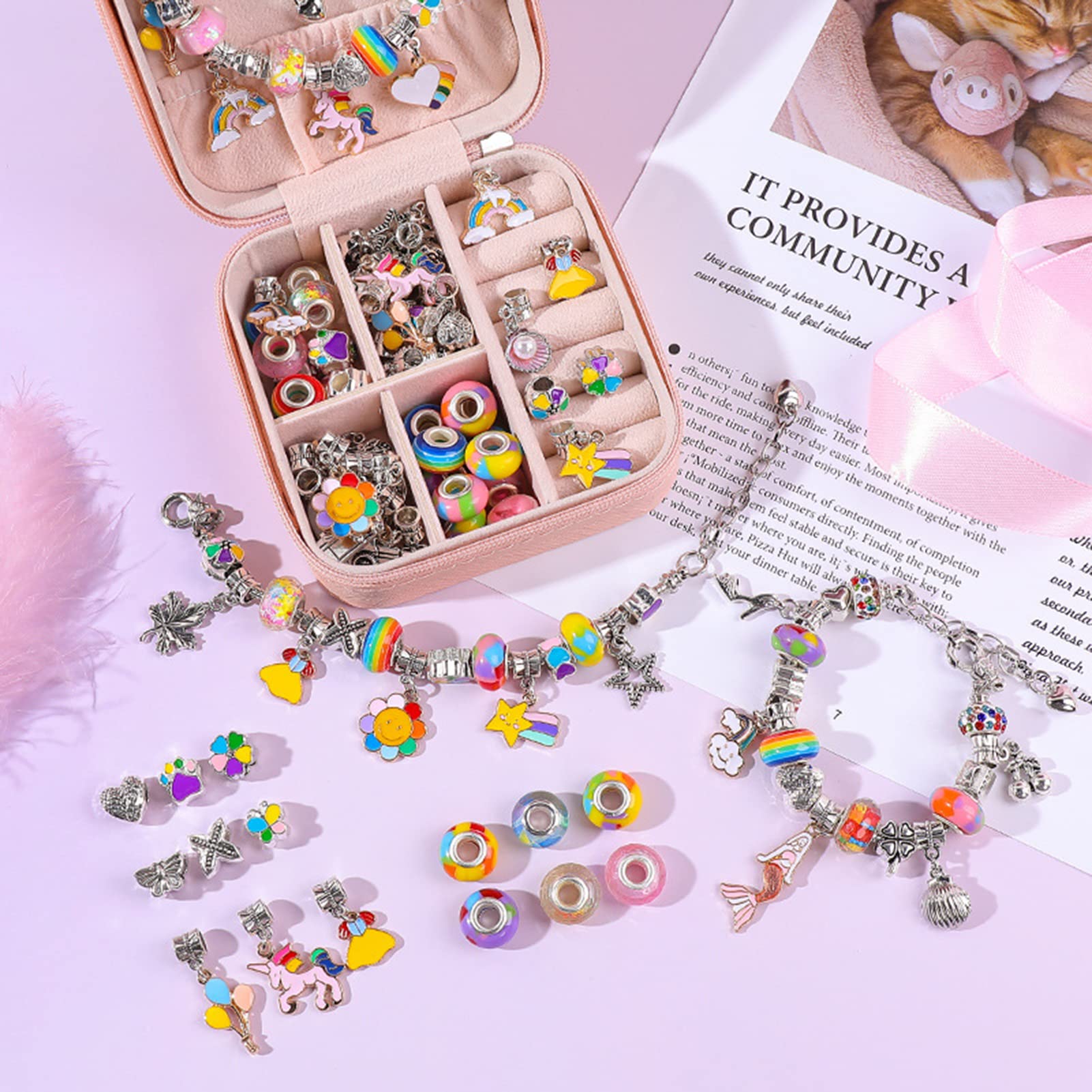 【可愛い収納ケース付き】ブレスレットをきれいに収納できる可愛いケースが付き、細かいチャームもしっかり個別に収納可能です。