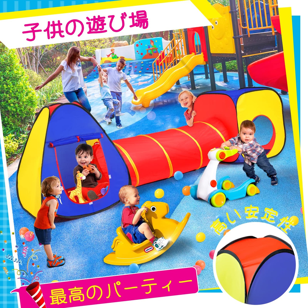 【子供の遊び場】キッズテントはすべての子供が持つべき遊び場です。カラフルのデザインは小さいお子様に、視覚的・感覚的な知育になり、また、トンネルやテントなどの障害物を立体的に感じる事で、空間認識を育むことができます。遊びながら子供の才能を育てる、幸せに成長する。