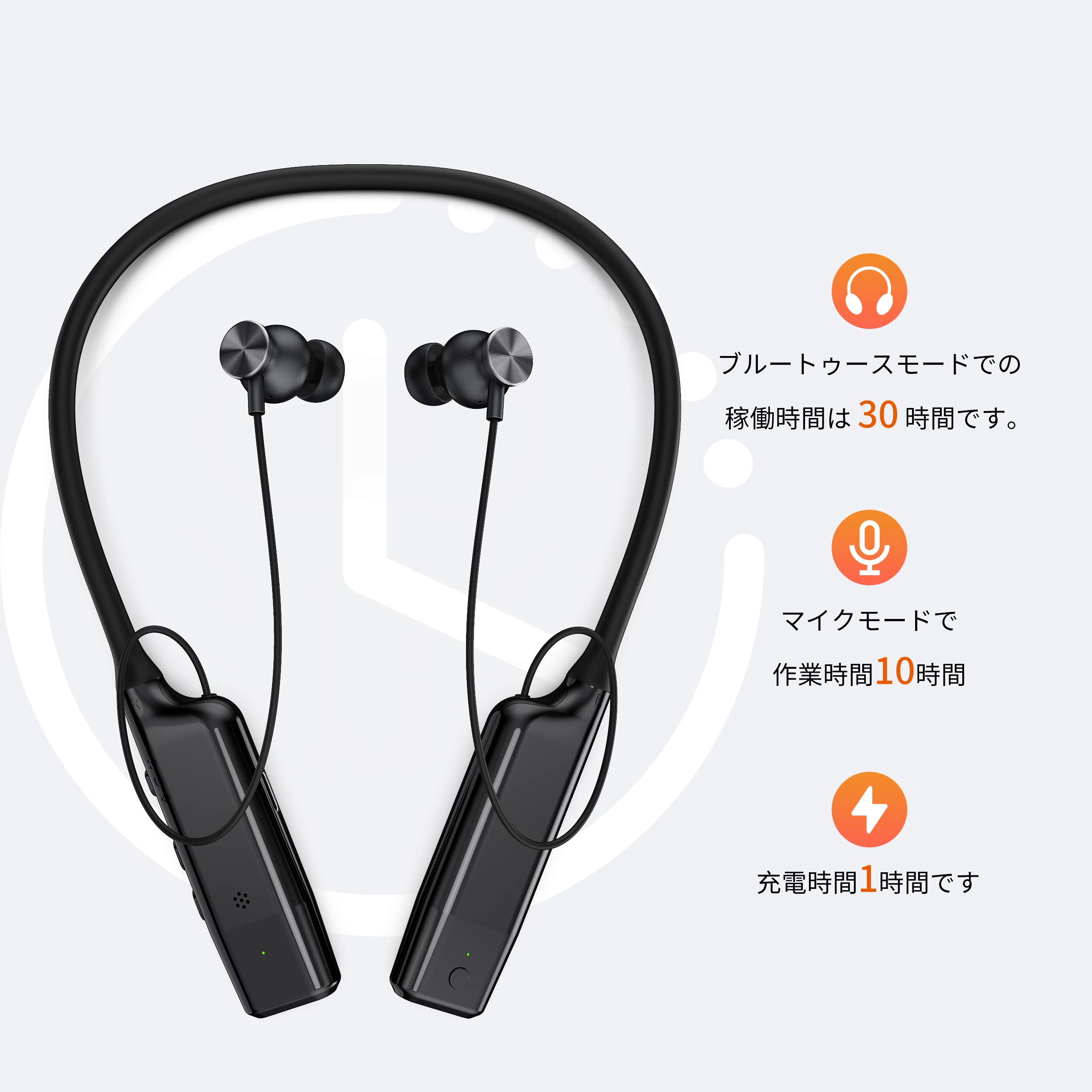 【ワイヤレスマイクモード+bluetoothイヤホンモード2in1】①首掛けワイヤレスマイク用lightning/type-c端子受信機は内蔵、受信機を携帯電話などの設備に挿入するだけ、自動ペアリングし、スマホ外付けマイクになって、録音できます。ワイヤレスマイク録音距離は最大20メートルです。②Bluetoothネックバンドイヤホンモードで、高音質なステレオ音楽サウンド実現しまう。イヤホンヘッドにマグネットが内蔵しているため、使用しない時は、くっつけて首にかけて便利に持ち運びが可能です。
