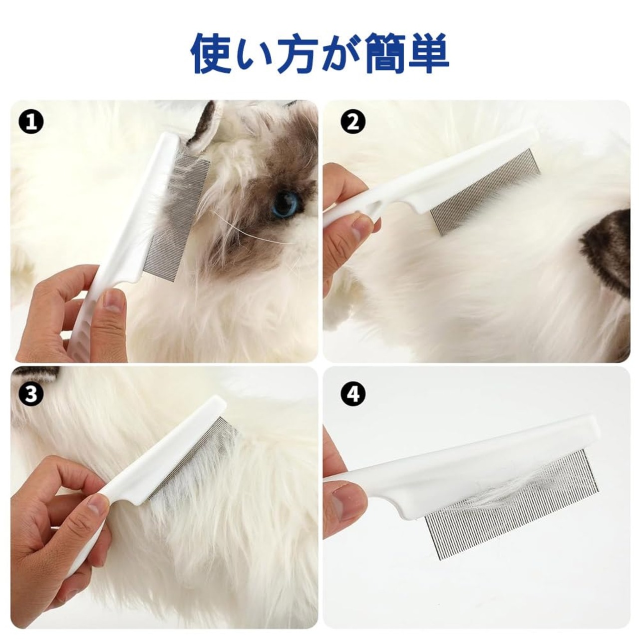 ペットコーム ノミ取り櫛 犬猫用櫛 【2本、18cm+14cm】犬猫美容ブラシ 水洗いOK 衛生的 丸い先端 傷つけにくい ステンレス製犬猫用櫛 のみとりくし ホワイト
