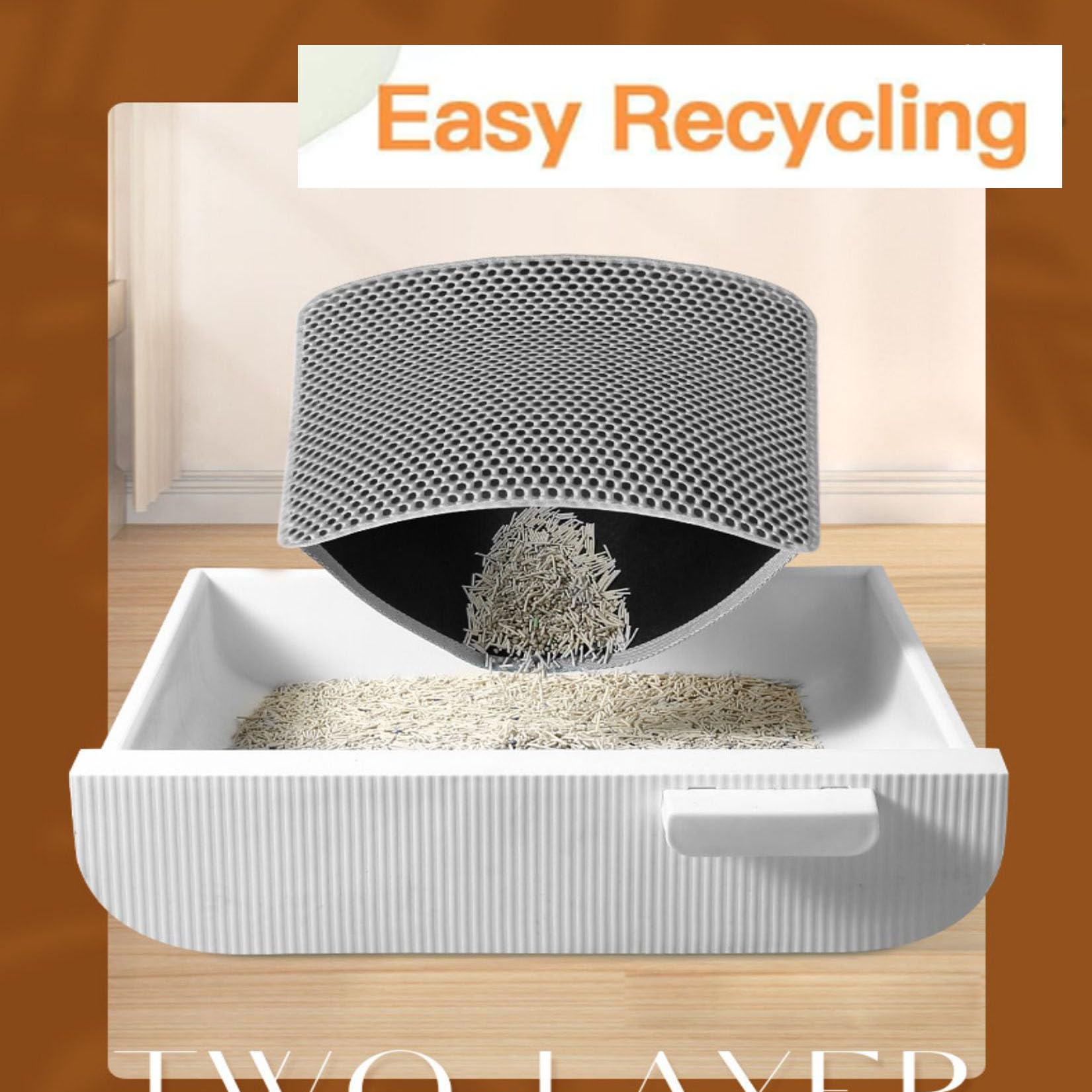 【ダブルレイヤーのハニカムデザイン】が砂の収集をサポートします。マットを持ち上げるだけで、砂がすべて落ち、それを砂箱に戻すことができます。大きな直径のハニカム状の二重構造により、猫の足に付いた砂がマットの間に挟まり、砂がマット内に集まり再利用されます。猫トイレ周りを清潔に保ち、清掃時間を節約します。さまざまな種類の砂や猫砂箱、フードつき、自己掃除猫砂箱に適しています。