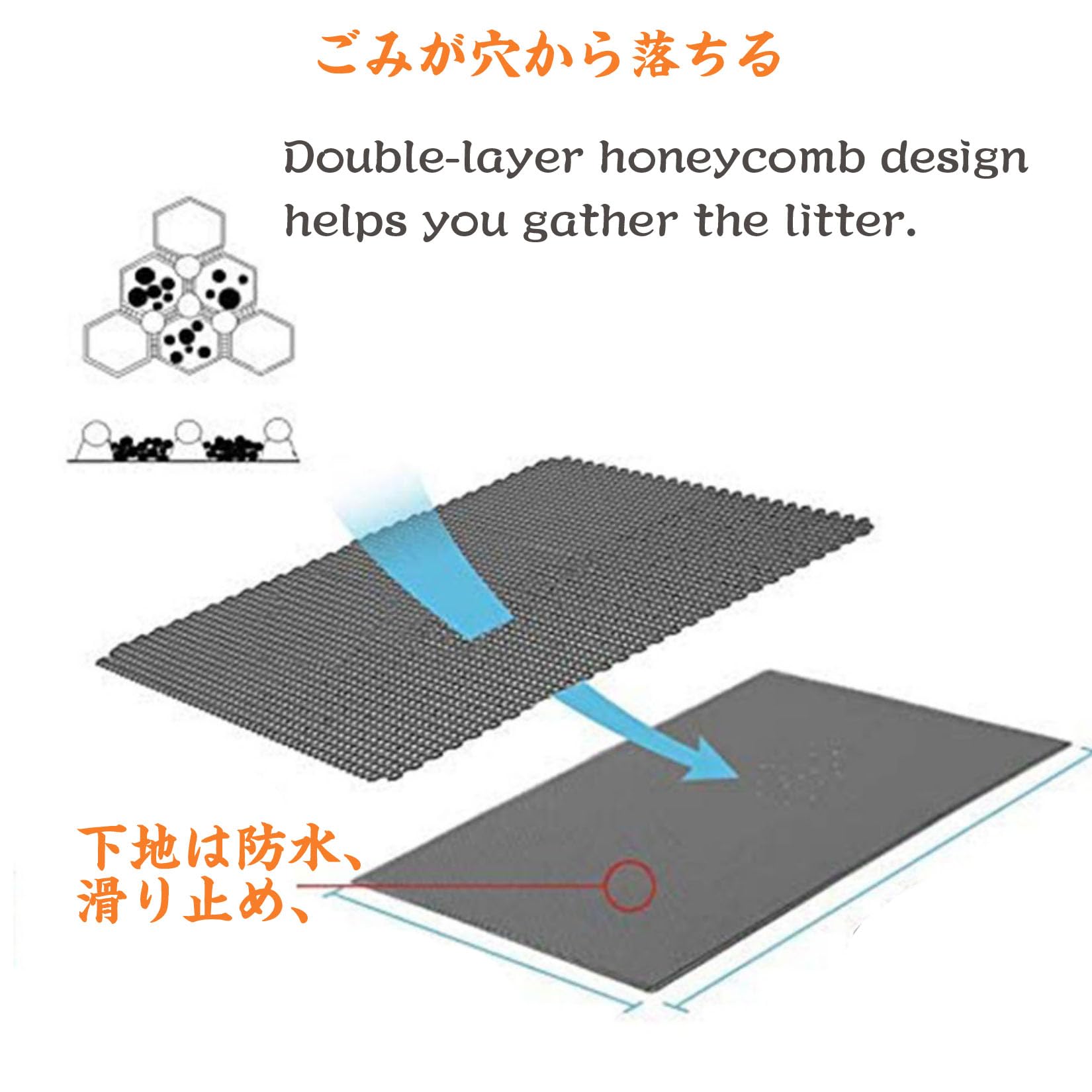 猫砂マット猫トイレマット40*50cm 猫砂取りマット猫砂の飛び散り防止 蜂房の設計 砂取りマットマット 二重構造 再利用可能 ペットキレイ 洗える 掃除簡単 EVA滑り止め 防水 高耐久