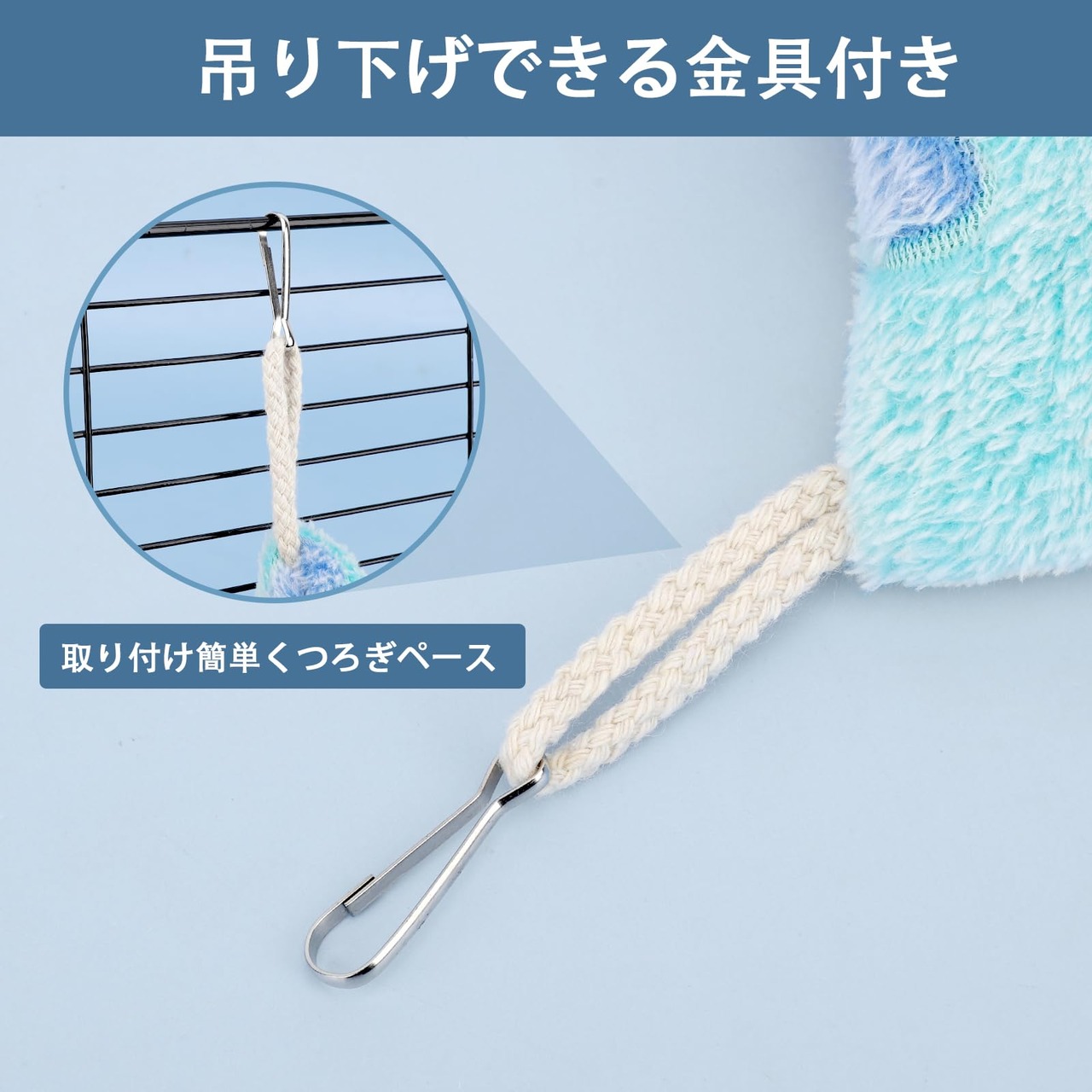 【色々な小動物に適用】:ウサギ、フェレット、モルモット、チンチラ 小鳥など小動物。手触りの良いボアを採用し、ふわふわ暖かな感触。ハンモックにゆられてぬくぬく。