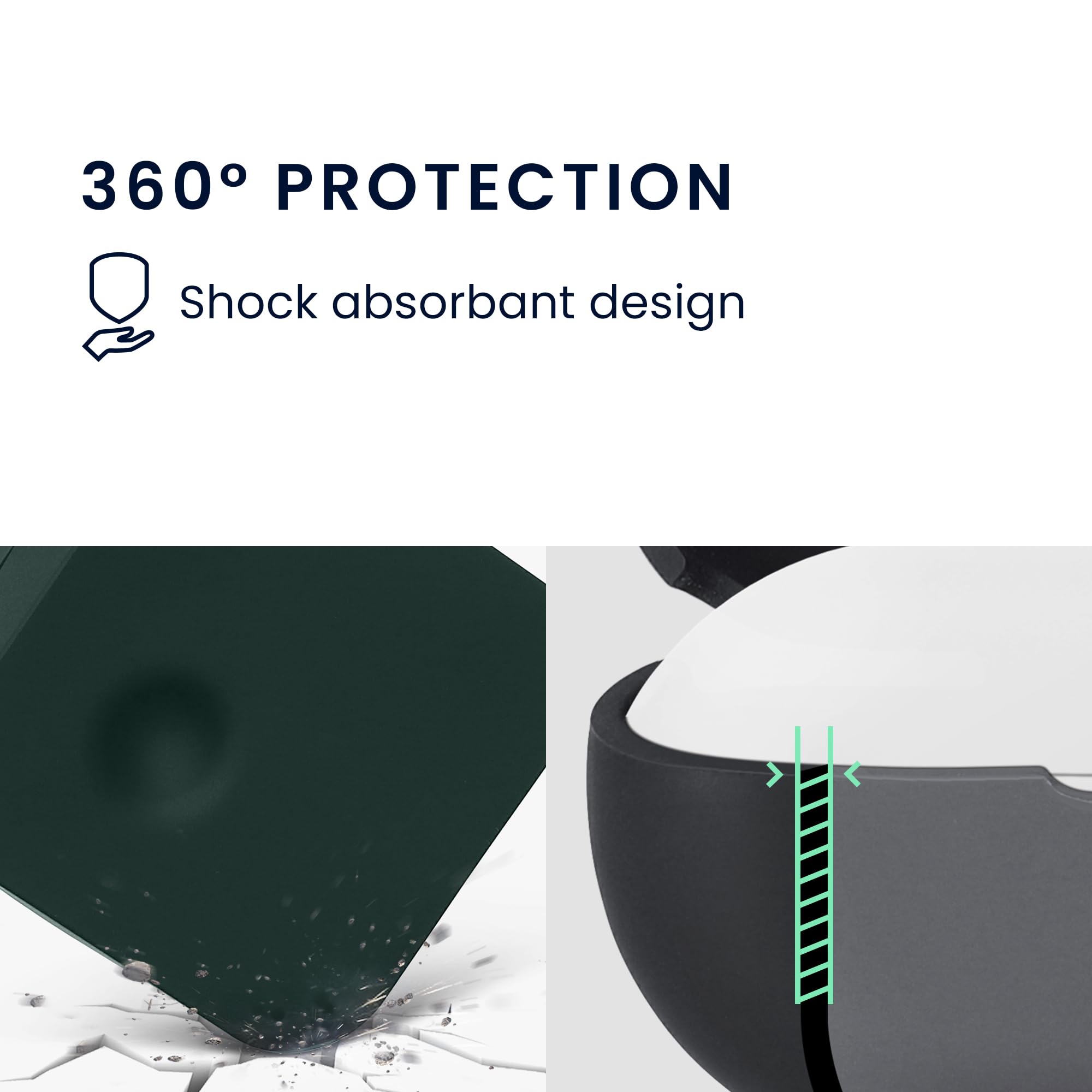 スタイリッシュ&機能的: 深緑色のワイヤレスイヤホンカバーは衝撃に強いシリコンから作られ、あなたのイヤフォンを摩擦や傷、汚れから保護します。シンプルデザインでかっこよく、スタイリッシュに守ることができます。またシリコーンは手触りよく、手にフィットするのも特徴です。