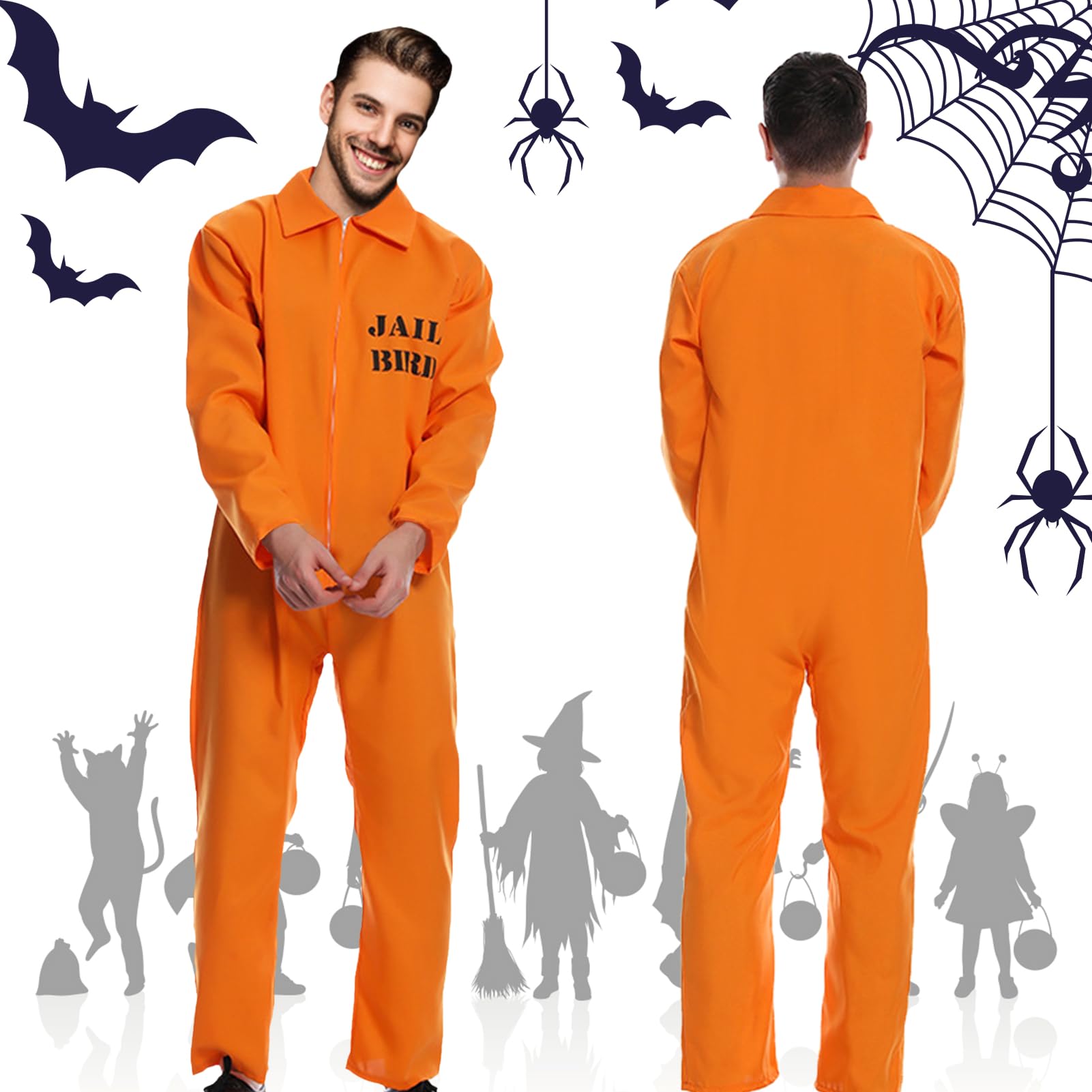 【特価セール】[Formemory] 囚人服 オレンジ コスプレ 囚人 仮装 コスプレ メンズ ハロウィン 囚人 コスチューム つなぎ 仮装