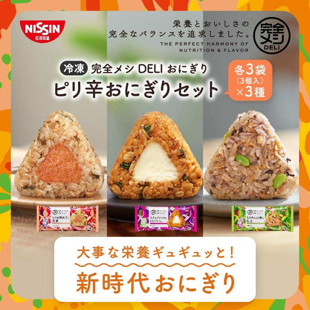 冷凍 完全メシ DELI 日清食品 おにぎり 冷凍おにぎり ピリ辛おにぎりセット ピリ辛明太子と高菜 ちりめん山椒と枝豆 コチュジャン香るビビンバ風 各3袋(3個入)×3種