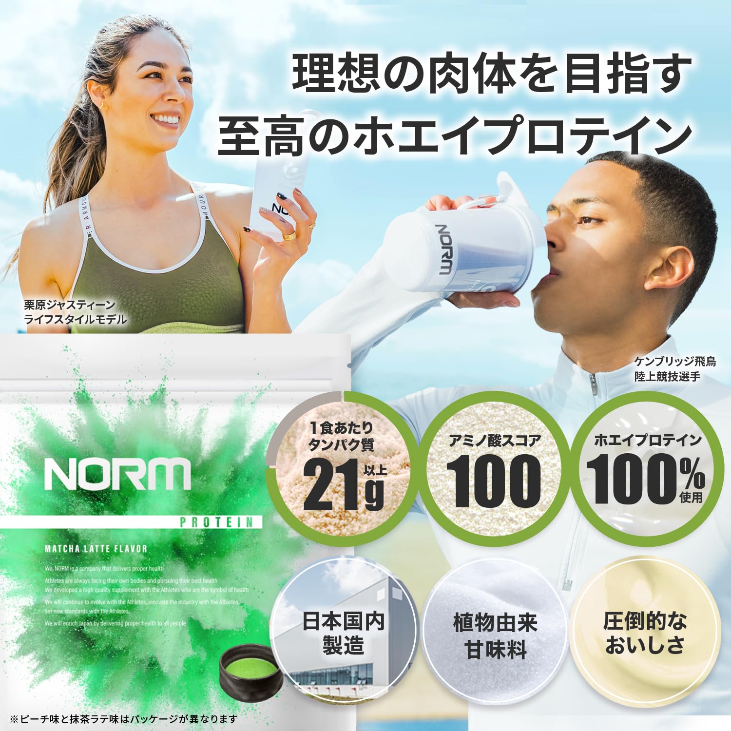 NORM ノーム ホエイ プロテイン 人工甘味料不使用 抹茶ラテ 1kg 国内製造 100名以上のトップアスリート愛用 WPC WHEY PROTEIN ホエイプロテイン