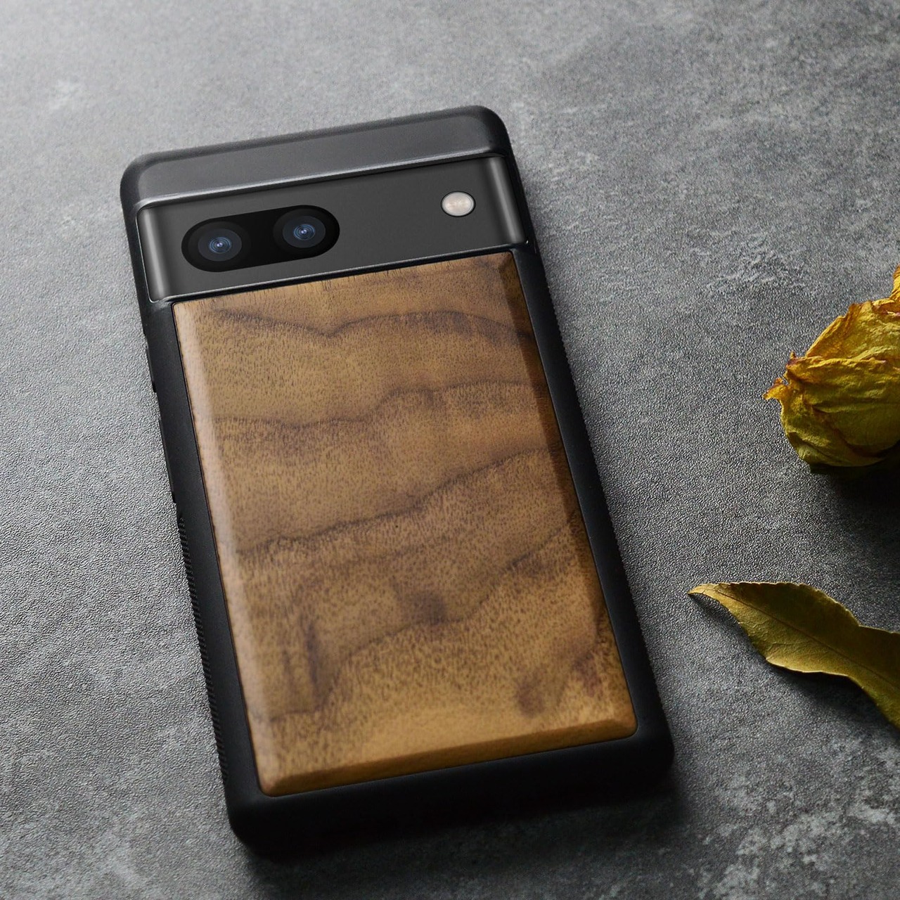 Carveit 木製 カバー 対応 Google Pixel 8a ケース [天然木&ブラックソフトTPU] 耐衝撃 ピクセル 8a ケース ワイアレス充電 対応 Pixel 8a ケース (ウォールナット-白木スタイル)