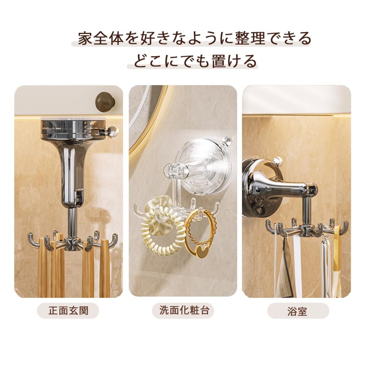 【360度回転折りたたみフック】当社のキッチンフックは360°回転するデザインを採用し、自由に回転し、あらゆる機会、角度、方向で使用することができます。実際のニーズに応じて柔軟に回転させることができ、引っかかる心配がありません。このフックは吊るすのがとても簡単で、キッチンの収納ニーズを満たすことができます。さらに、このフックは楽しく遊び心のある飾りとしても使え、キッチンやリビングルームに個性的なタッチを加えます。