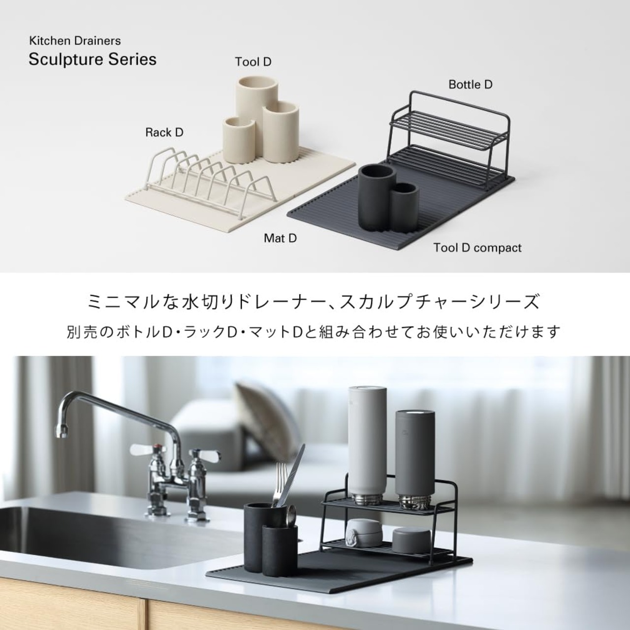 ideaco (イデアコ) 水切り ツール 箸 カトラリー 立て 2口 幅11X奥行6.8X高さ10.3cm Kitchen Drainers Sculpture Tool D compact stone sand white (キッチン ドレーナー スカルプチャー ツールDコンパクト ストーンサンドホワイト)