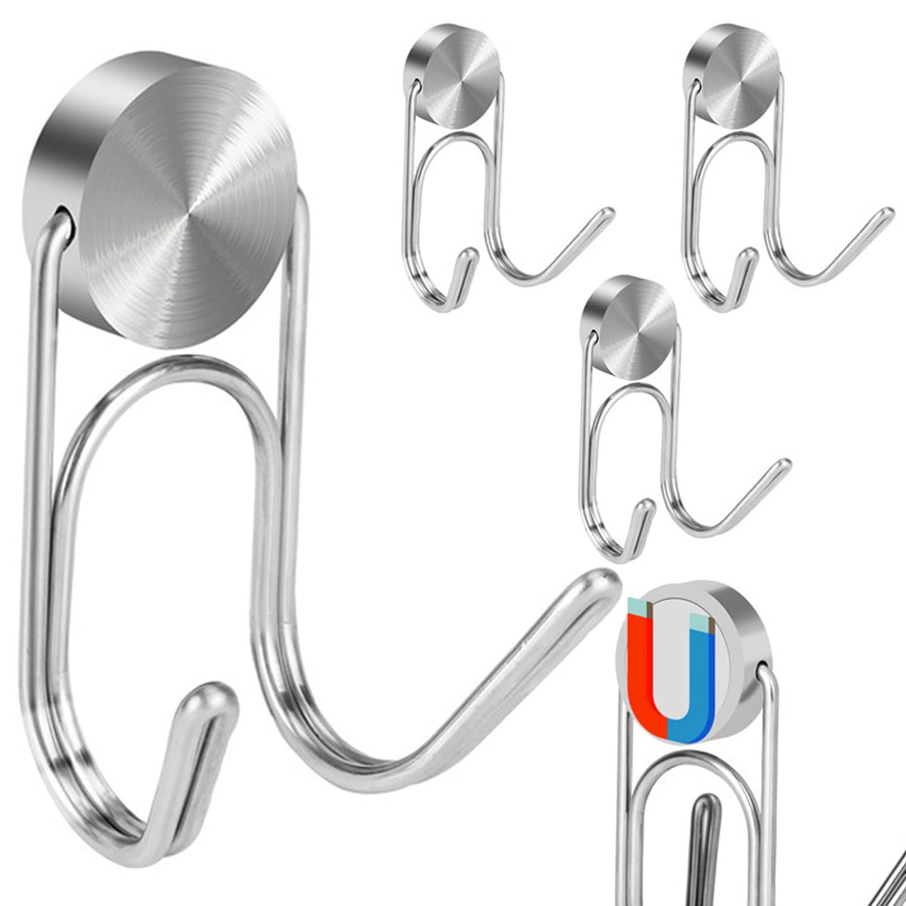 Wowfill マグネット フック 磁石付き 304ステンレス製 防錆 垂直耐荷重18kg 水平耐荷重3kg 防腐食 キッチン用 オフィス用 浴室 冷蔵庫 玄関 壁掛け用 4個(25mm-2-18kg シルバー)