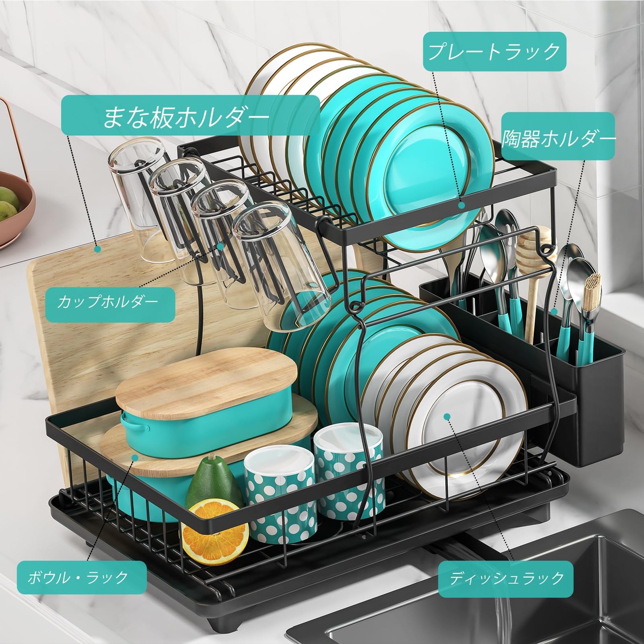多用途で実用的】スノコ付きMERRYBOX 水切りラック 2段 キッチン 水切りラックは単なるキッチン 水切りではありません。 省スペースの 洗い物ラック は、食器を効率的に自然乾燥させ、キッチンを整理整頓するのに役立つ多用途のキッチン コンパニオンです。 家族が少人数であろうシンク 水切り デザインは、ほとんどの皿サイズに適しており、キッチンカウンターに追加するのが賢明です。