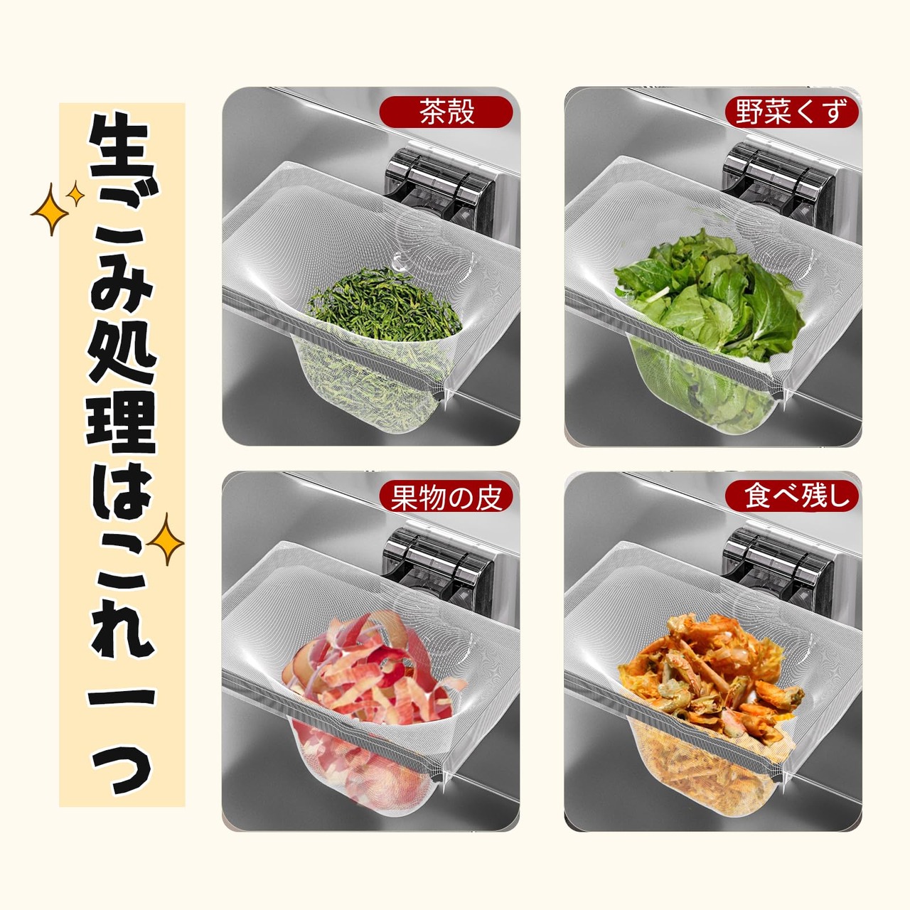 【高効率水切り】:水切りネットは300針の密な編み方でできており、残し物やスープをすばやく濾過し、シンク排水ホースが詰まるのを防ぎ、超耐荷重が持つため、水切り不足や脱落などの心配する必要はありません