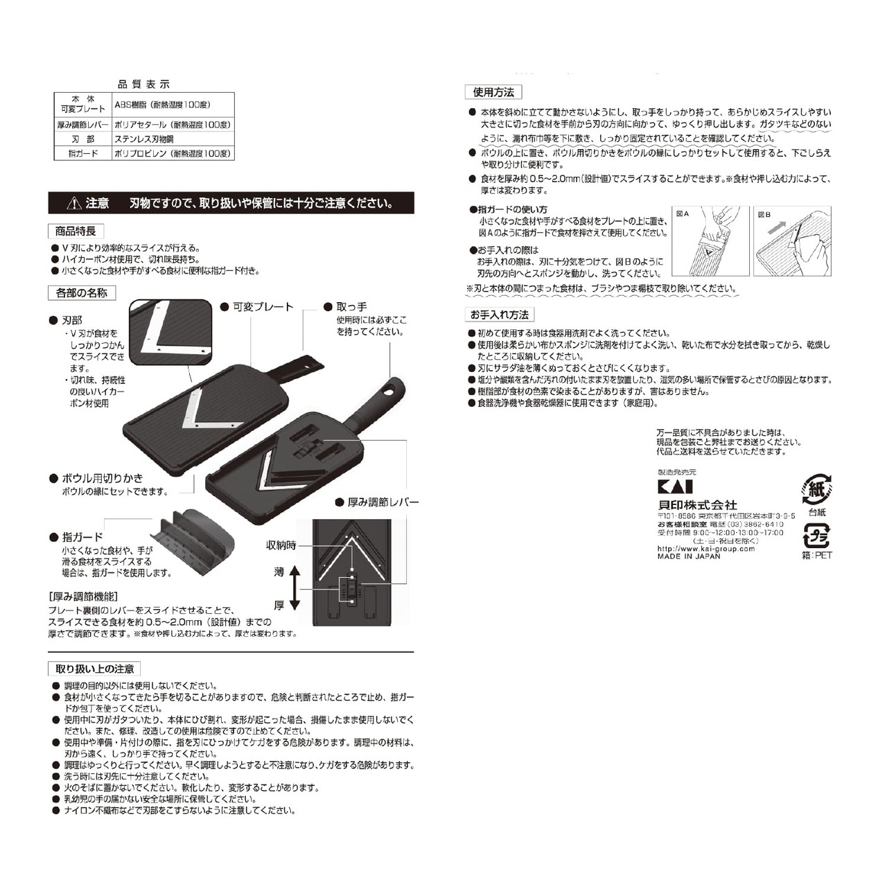 【人気商品】貝印(Kai Corporation) KAI スライサー 関孫六 可変式 V レギュラー ガード 付 日本製 DH3343 ブラック