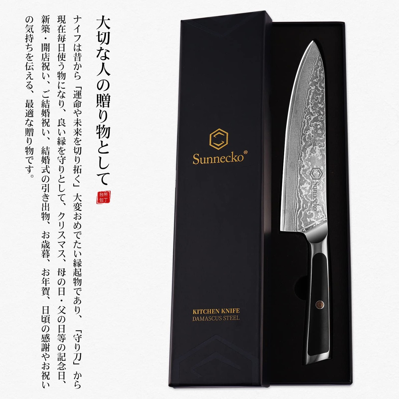 【在庫処分】Sunnecko 包丁 牛刀 203MM ダマスカス 67層 ステンレス 鋼 家庭用 キッチン 両刃 万能 よく切れる 野菜 肉 魚 プレゼント 結婚祝い パン切り