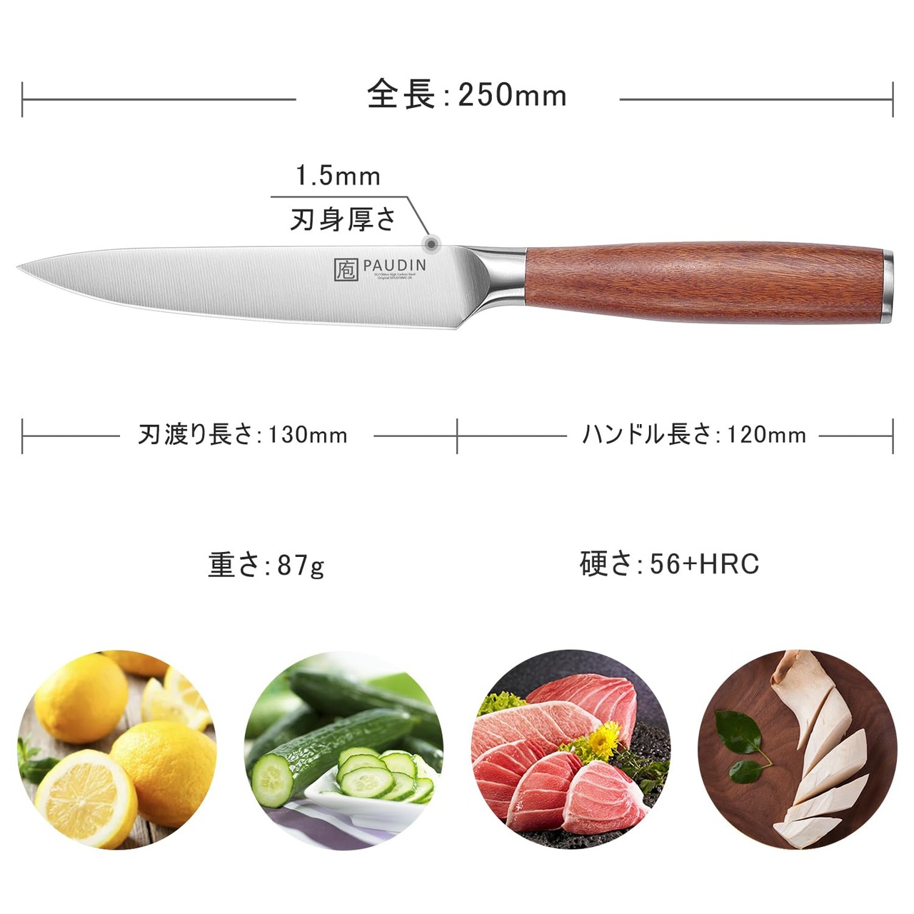 【在庫処分】PAUDIN ペティナイフ パン切り包丁 肉切り包丁 130mm 果物ナイフ 天然木ハンドル 5Cr15Mov 高炭素ステンレス 両刃 小刀 フルーツナイフ 万能 果物 よく切れる 父の日 プレセント