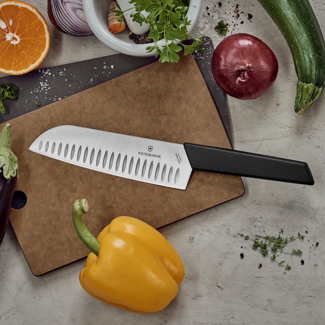 VICTORINOX(ビクトリノックス) 三徳包丁 食洗機対応 肉 魚 野菜 マルチに使える万能包丁 17cm溝付 ブラック 料理全般に使える万能なナイフ スイスモダン 6.9053.17KB