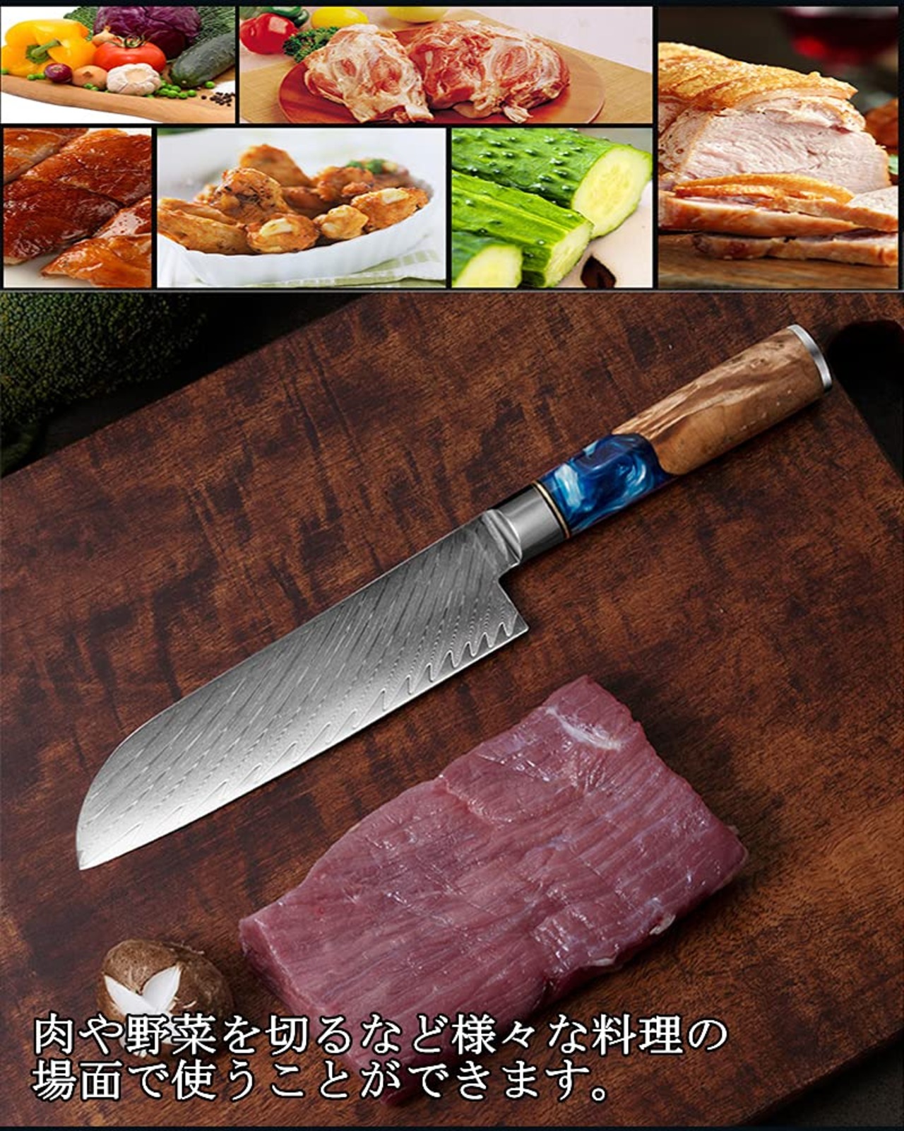 Utaki ダマスカス 三徳包丁 包丁 67層ステンレス 177mm 鋭い切れ味 キッチンナイフ 万能包丁