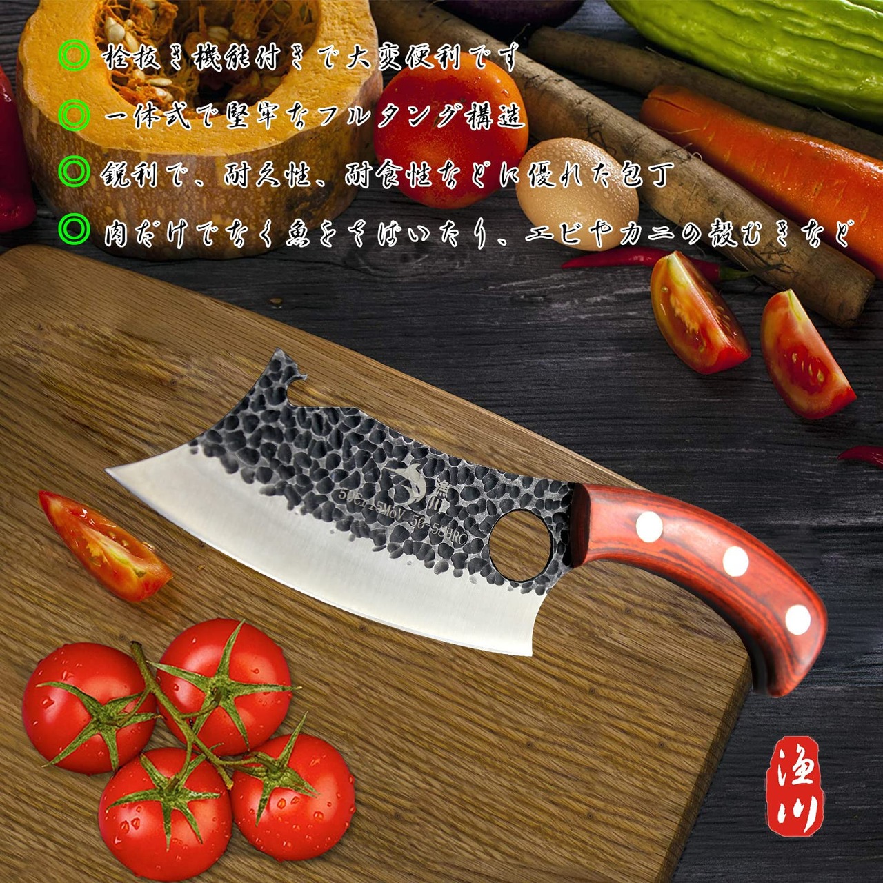 漁川 骨切り包丁 刃渡り155mm 刃厚5mm 【一体式で堅牢な骨切りナイフ】 槌目鍛造 【栓抜き機能付き】 【アウトドアにも最適】 家庭用 キャンプ BBQ 魚 魚介 肉 骨 切る 捌く