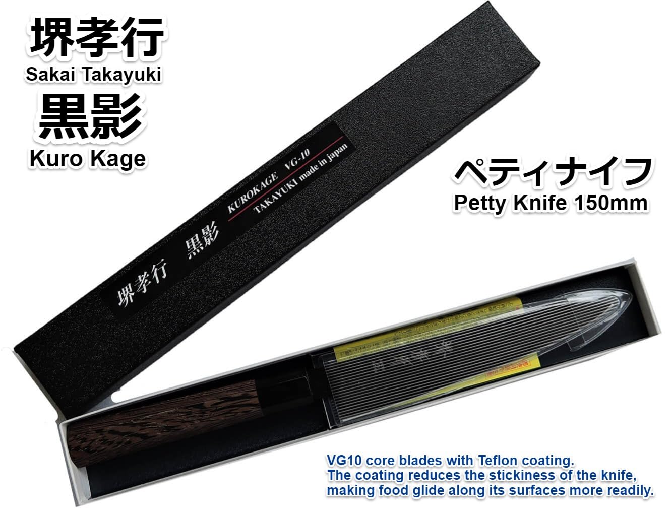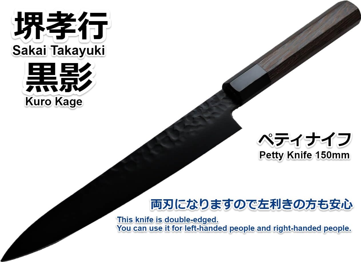 堺孝行 Clean&Stylish包丁 黒影 VG10槌目フッ素加工和式包丁 ペティ 150mm 07491