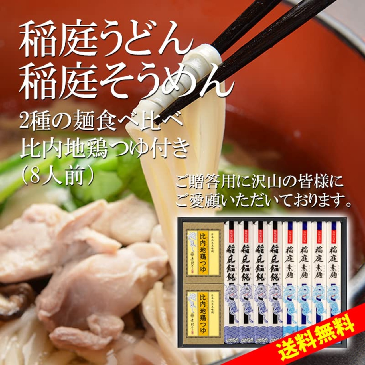 稲庭うどん&そうめん 比内地鶏つゆ付き(8人前)