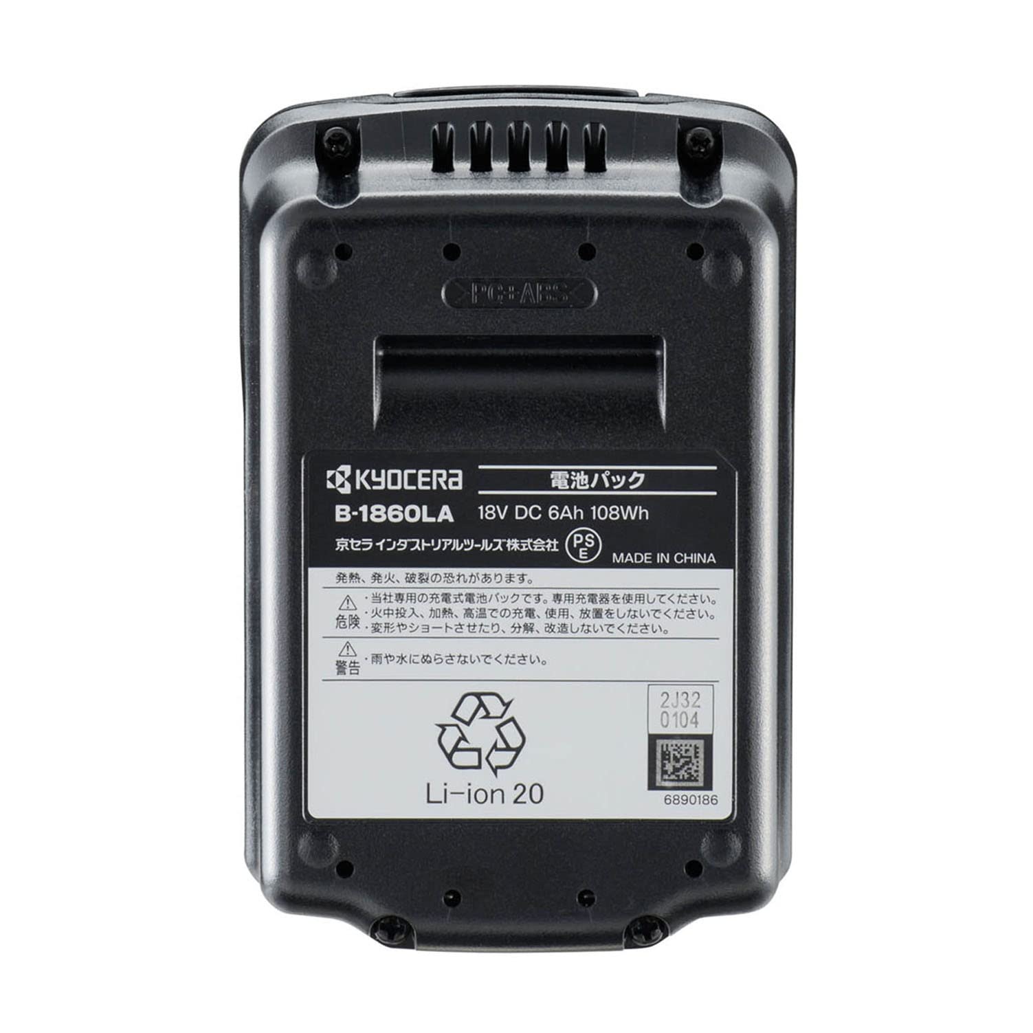 【在庫セール】京セラ(Kyocera) 旧リョービ リチウムイオン電池パック 18V 6000mAh B-1860LA 64000721 ブラック【18V充電工具用】 電池容量:6000mAh(6Ah)