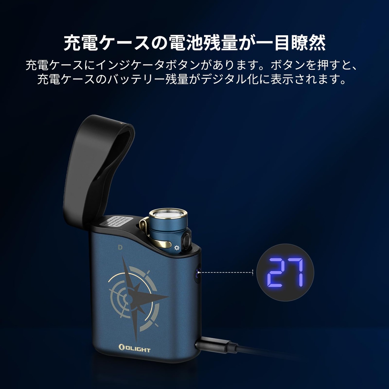 {多シリーズ対応に充電} お客様の利便性のため、Baton 4 Kitは双方向TypeCでワイヤレス充電ケースに接続し、他の電子機器を充電する機能が追加されます。対応するOLIGHT懐中電灯の充電だけでなく、Type-C充電に対応する他の携帯電話などの電子機器の緊急充電にも使用でき、幅広い用途に使用できます。また、充電ケースには電量表示がデジタル化され、電量残量を簡潔に表示しています。OLIGHTのBaton 3、S1RII、Perun mini、Perun 2 miniというシリーズの懐中電灯とヘッドライトにも適用しています。充電ケースには、懐中電灯の充電状態を示す赤と緑のインジケータライトが組み込まれています(蓋が閉まっていない場合でも、充電しながら懐中電灯が点灯できます)